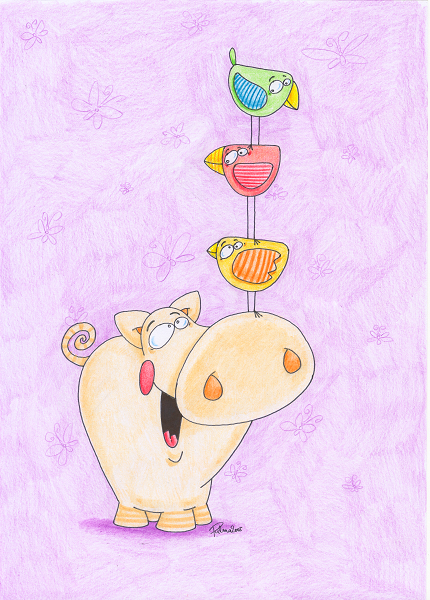 Obrázky kreslené pastelkou.